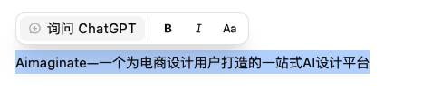 除了"询问GPT"编辑外,还可进行加粗、斜体、设定标题格式等基础文字编辑。"询问GPT"功能允许直接输入对段落的处理需求,例如输入"简化该段落",系统会按要求重新生成选中部分。