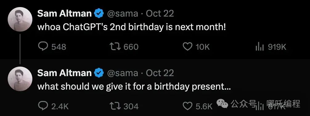 4、Sora会是奥特曼送给ChatGPT的生日礼物?