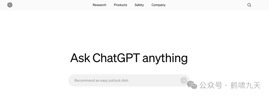 OpenAI官方大改版:新版首页增加极简搜索框,提示“Ask ChatGPT Anything”,果然成了问答引擎。