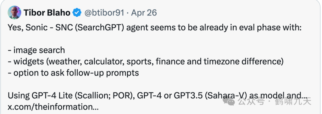 Sonic-SNC (SearchGPT) 代理已经处于评估阶段,功能有: