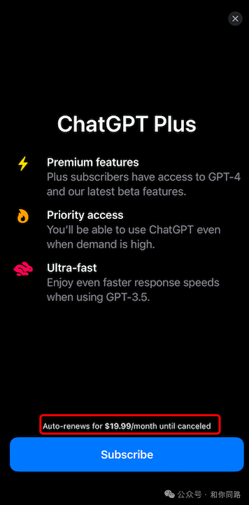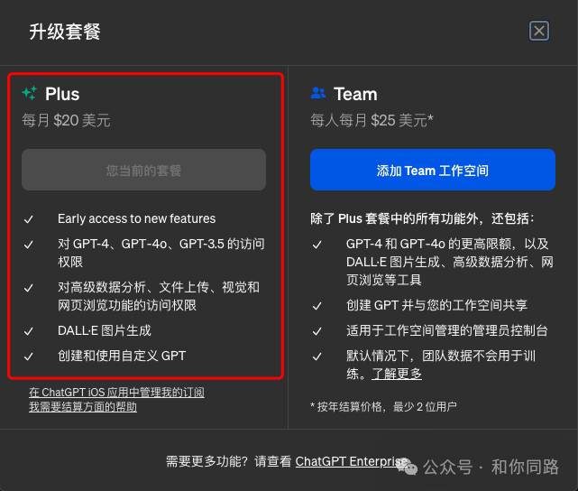 如果升级至plus用户,需要支付订阅费才能访问,每个月的订阅费用19.99美元。计划是订阅一个月,先让自己升级至plus用户,看下是不是可以通过支付一个月的订阅费用,然后持续使用免费的GPT-4o,也在心里默默祈祷,希望不是被割韭菜,一个月之后又收费了。