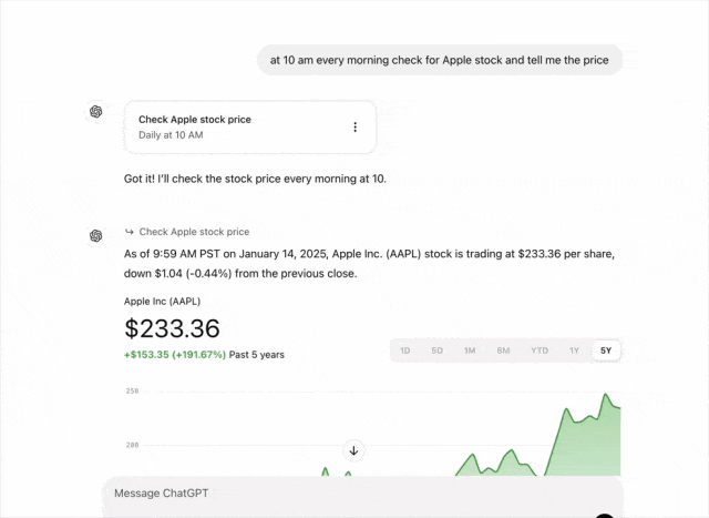 ## 未来AI助手来了!ChatGPT『Tasks』功能能做的比你想象的更多!,,ChatGPT 最新推出的『Tasks』功能,将 AI 助手的能力提升到了一个新的高度。它不再局限于简单的对话和文本生成,而是能够主动理解用户需求,并拆解成可执行的任务清单,帮助你高效完成工作。无论是制定旅行计划、撰写项目报告,还是管理日常事务,『Tasks』都能根据你的指令,自动生成步骤清晰的行动指南,并提供相关资源和工具推荐。这意味着,AI 助手将不再是被动响应,而是主动出击,成为你工作和生活中不可或缺的智能伙伴。