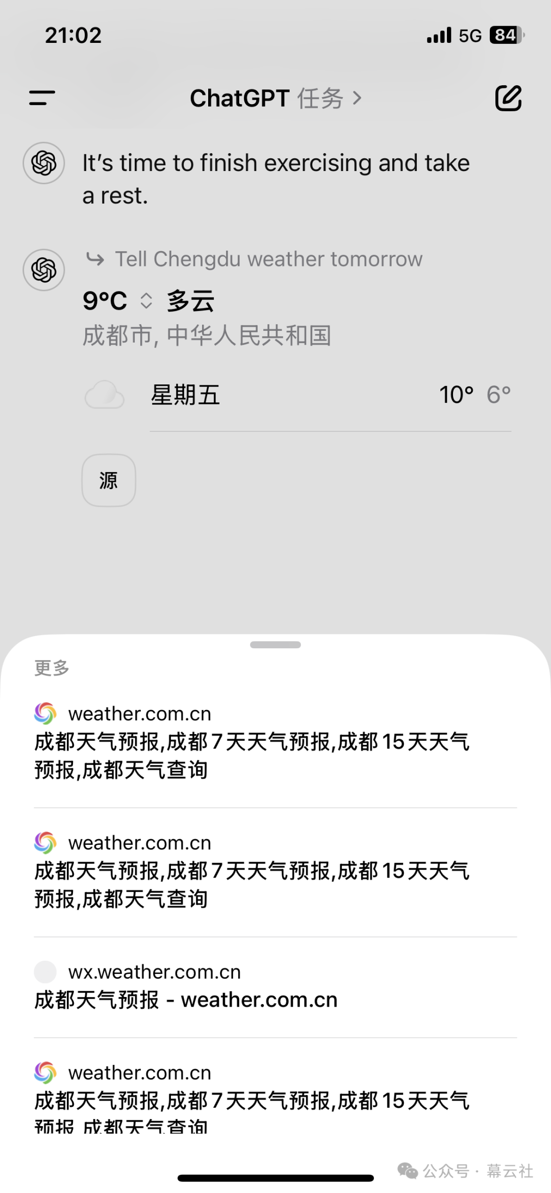 到达设定时间后,ChatGPT会通过APP推送任务执行结果,点击通知即可查看生成的内容或检索到的信息,根据测试,任务执行效果较为理想,能够满足大多数用户的需求。