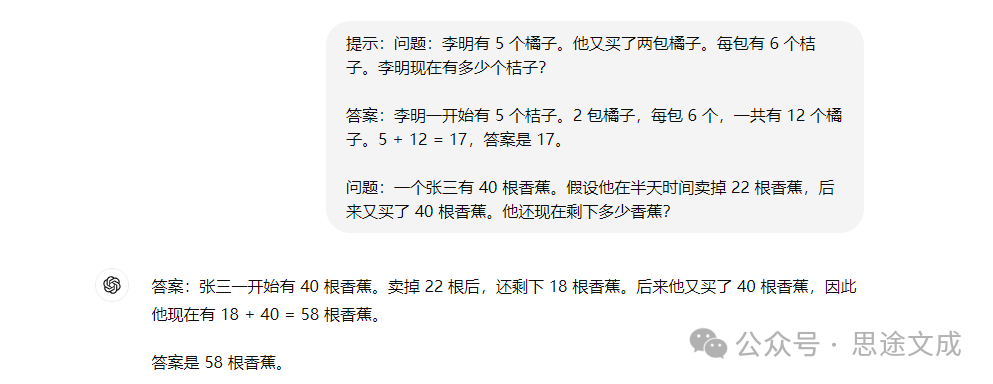 通过这种思维链的方法,你可以有效示范问题的解答逻辑,让 AI 明确如何回答。