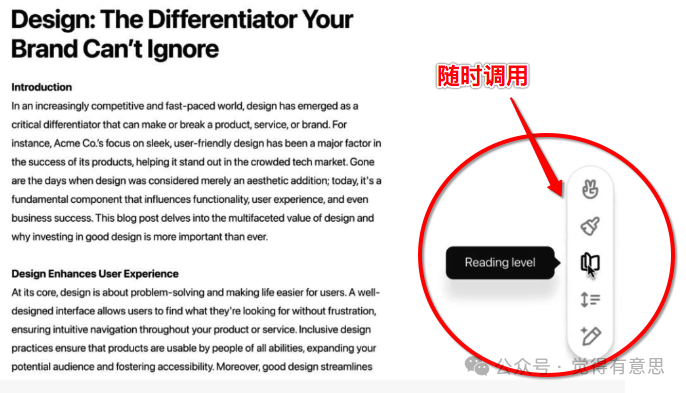 可以看到效果确实不错,标题从“设计的价值”变成了“设计——品牌不可忽视的与众不同”。创作过程都变得更加流畅和高效。