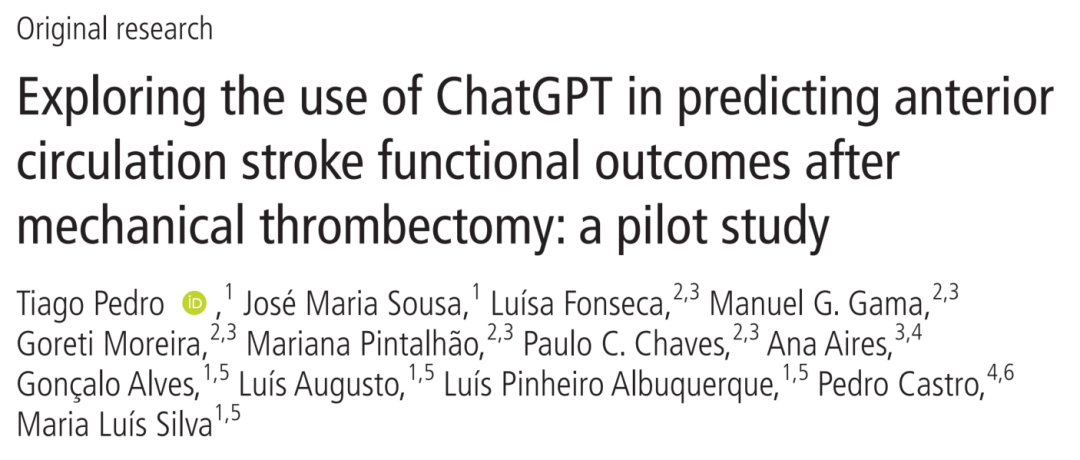 ChatGPT可充分预测机械取栓术后AIS患者的短期功能预后,并且优于现有的风险评分。将人工智能模型融入到临床实践中有望用于患者的治疗管理,进一步改良和完善这些模型对提高卒中治疗的准确性至关重要。