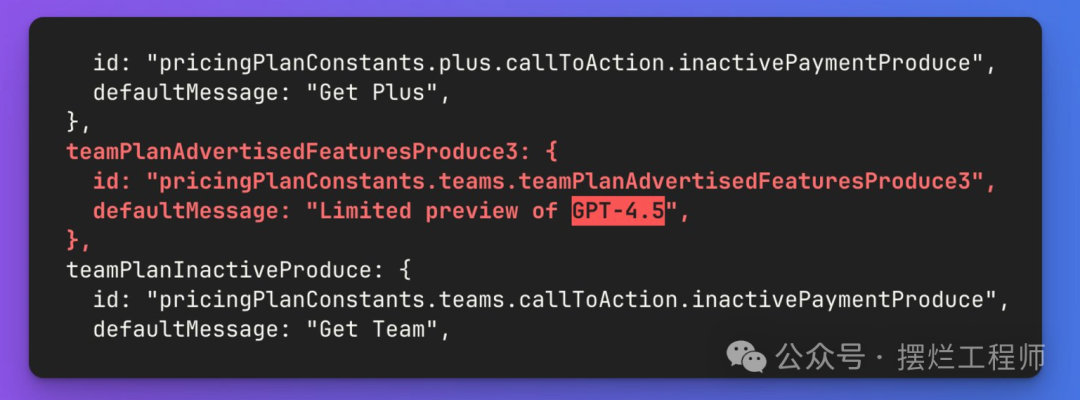ChatGPT Team 计划中提到的“GPT-4.5 模型”,不过目前已经被删除了。你也可以通过初始化ChataGPT页面时,查看模型API的请求,可以看到对应的模型。