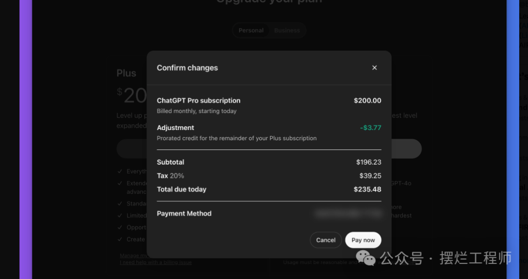 难怪最近这段时间给免费用户和Plus用户降智了,这是要我们去购买Pro服务吗?如果直接从Plus用户升级为Pro用户,可以按剩下的额度比例进行抵扣。