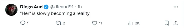 有网友开玩笑道,“下一步GPT该指导人做饭了。”还有网友表示,“Her正在慢慢成为现实”,“如果这不是 AGI,我不知道什么是。”