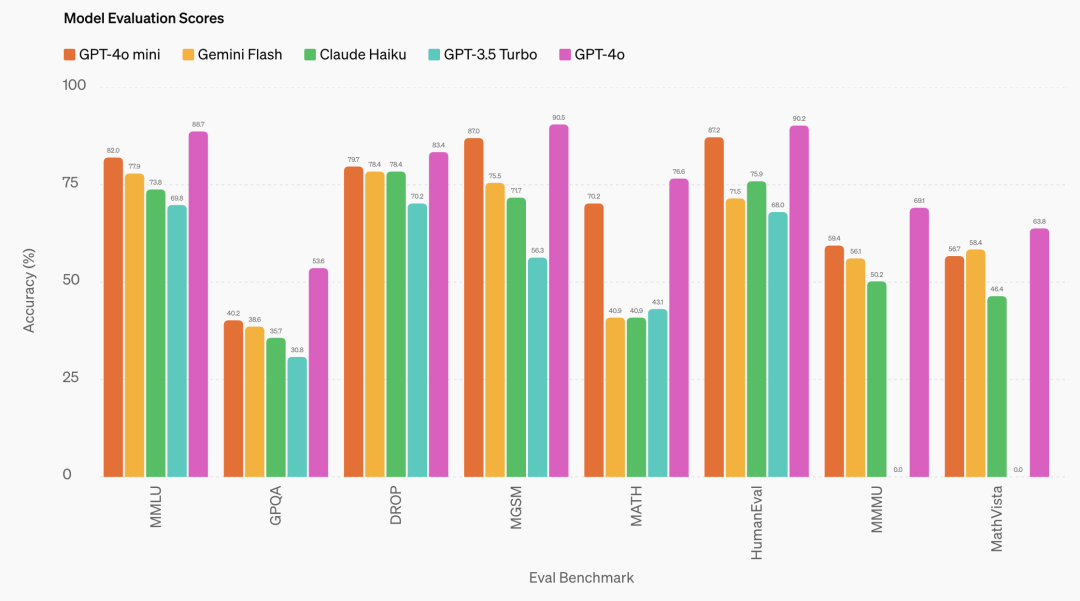 GPT-4o mini 已在多个关键基准测试中进行了评估。