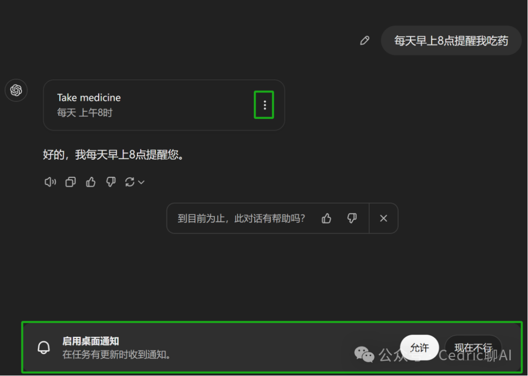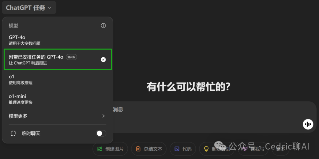 “Tasks”功能的应用场景极为广泛,用户可以设置每天早上自动查询股票行情,或在特定时间发布社交媒体内容;也可以安排每晚学习新单词或获取最新的人工智能新闻,对于需要高效管理日程的用户来说,这一功能无疑是一个强大的工具。