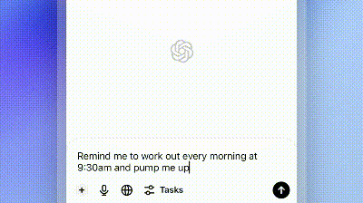 要使用“Tasks”功能,用户首先需要在模型选择器中启用“附带已安排任务的GPT-4o”(4o with scheduled tasks),开启对话后,用户可以用自然语言输入任务内容及执行时间,输入“每天上午8点提醒我查看股市行情”或“每周五晚上9点为我讲一个笑话”,ChatGPT会自动创建相应的定时任务,并在设定的时间通过桌面通知提醒用户。