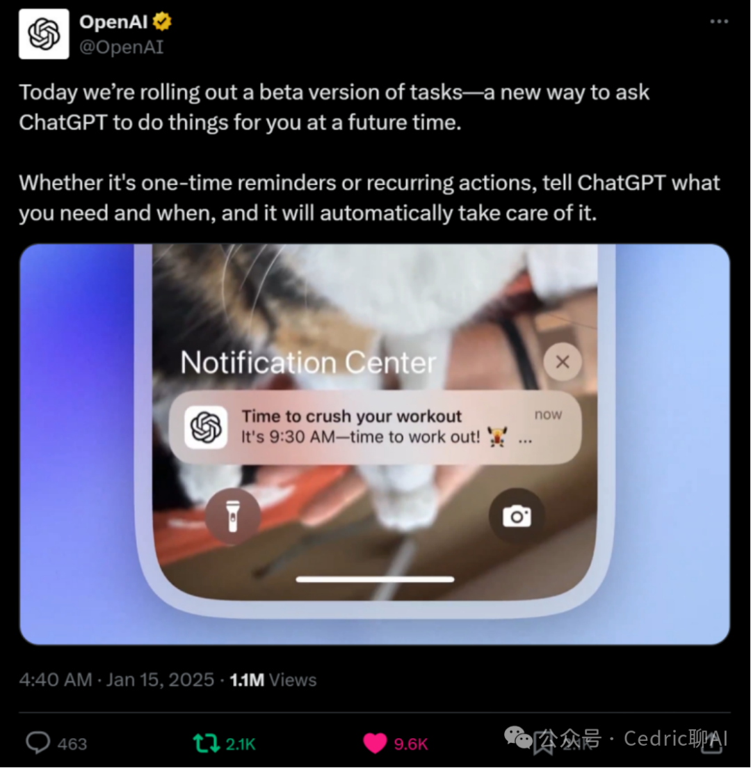 OpenAI近日推出了名为“Tasks”的新功能,使ChatGPT能够变身为全能Agent,自动处理日常任务和提醒。通过这一功能,用户可以将ChatGPT设置为个人助手,帮助管理日程、设置提醒、安排会议等。Tasks不仅支持语音和文本输入,还能与其他应用和服务集成,进一步提升用户体验。这一功能的推出标志着ChatGPT从单纯的对话工具向多功能助手的转变,为用户提供了更高效的任务管理和时间规划解决方案。OpenAI表示,未来将继续优化Tasks,使其支持更多场景和复杂任务,进一步释放AI在日常生活中的潜力。