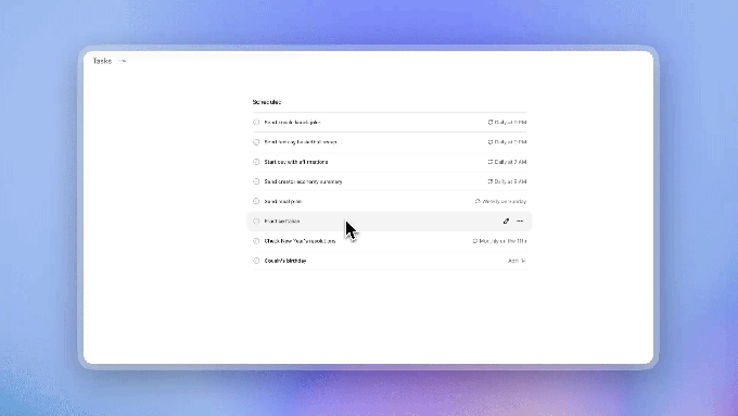 周期性任务:“每周五根据我的位置和天气预报生成周末计划。”