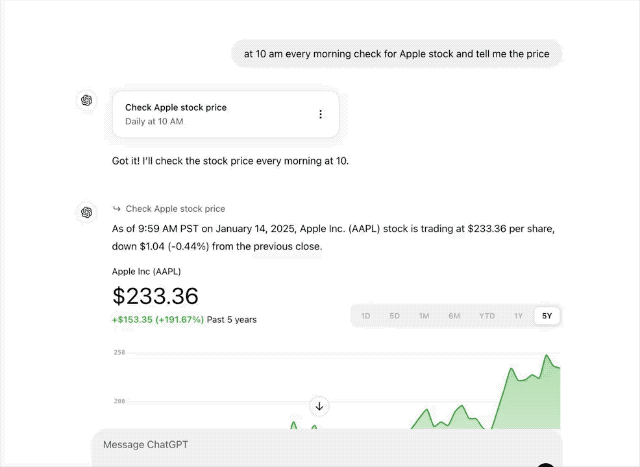 投资者的福音:Tasks可以定时推送股市动态,并生成个性化的投资建议,帮助用户把握市场脉搏。