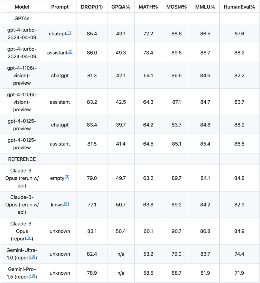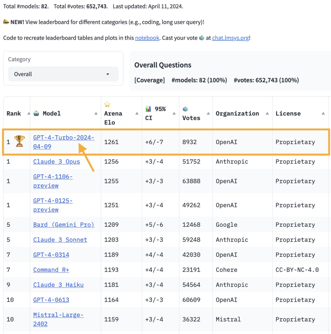现在他们陷入了困境。无论怎样进行微调,GPT-4 现在都不会变得更好。据 The Information 援引知情人士的消息,两名 OpenAI 的研究员因涉嫌泄露机密信息而遭到开除,其中就包括去年宫斗大戏主角 Ilya Sutskever 的忠实盟友——Leopold Aschenbrenner。另一位被解雇的研究员 Pavel Izmailov 也曾是安全团队的成员。尽管不清楚这两位被解雇的员工具体泄露了哪些信息,但在这个 OpenAI 加速前进的节骨眼上,这则消息倒也显得耐人寻味。值得一提的是,现在超过 8K 用户投票再次将新版本 GPT-4 送回了竞技排行榜榜首,再次回到了「熟悉」的位置。GPT-4 Turbo 在英文能力上依然是遥遥领先的,但在中文能力上则显得有些力不从心,稍逊于 Claude-3 Opus。因此,若你专注于中文的案头工作,那转投 Claude 3 或许是更明智的选择。附上测试结果地址:https://twitter.com/lmsysorg/status/1778555680519299105前几天,正当人们还在沉浸在「把玩」Gemini 1.5 Pro 时,针尖对麦芒的 OpenAI 宣布推出 GPT-4 Turbo 的正式版本,不仅基础能力大更新,还自带读图功能。一时间,本该是 Google 大杀器的 Gemini 1.5 Pro 又成了「昨日黄花」,给人一种汪峰入职 Google 的感觉。再加上这次新版 GPT-4 Turbo 实装到 ChatGPT 的新闻,OpenAI 不光在实力上打压 Claude 3,也让 Google 更像佛祖下的猴子似的,尽管大闹了天宫,但蹦跶的再欢也翻不出佛祖 OpenAI 的手掌心