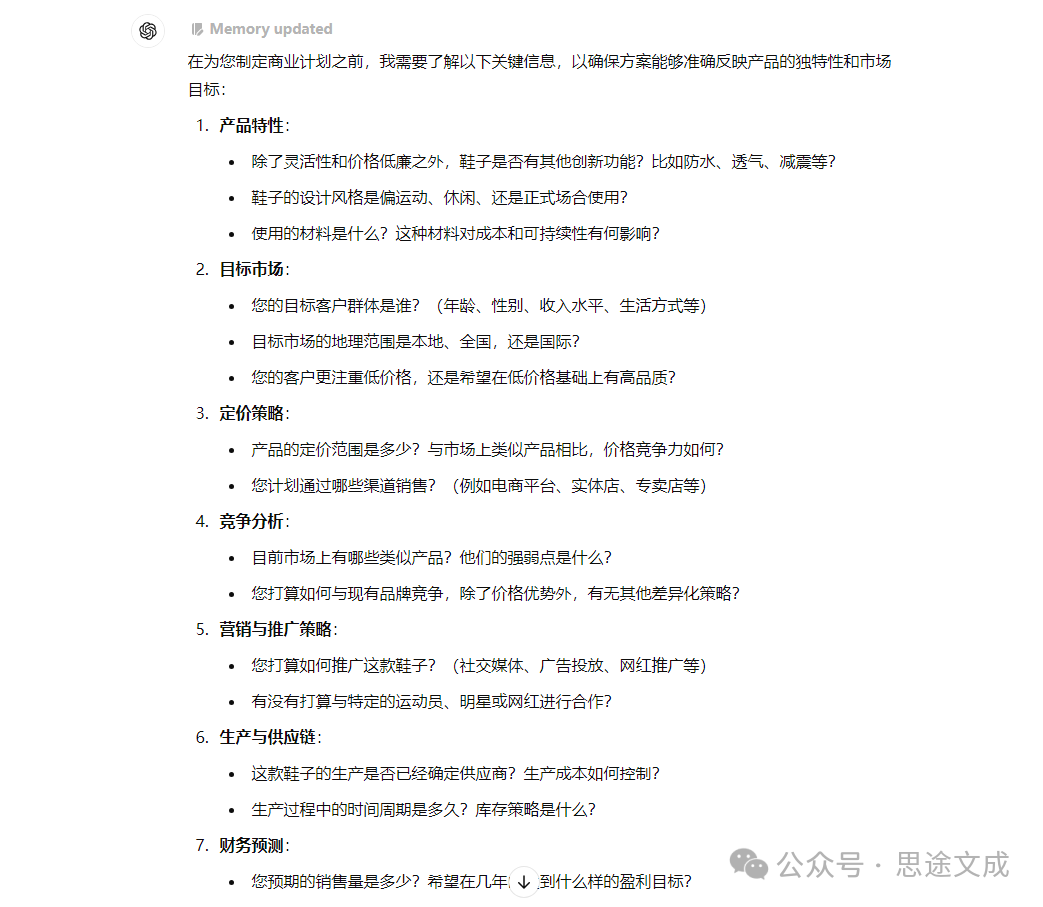 明确限制:设定回答中的任何约束条件,如字数限制、业务规模、预算等。