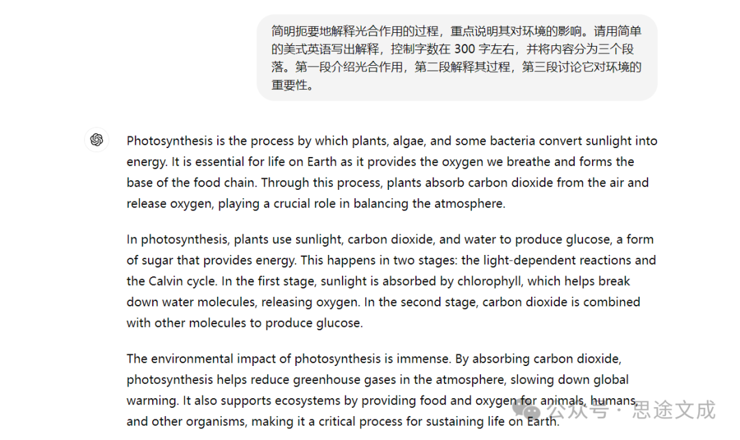 例如,你可以要求 ChatGPT 将回答限制在“300字以内”,“用美国英语写作”,或“将答案分为五个要点”。这些指令可以帮助你获得更符合要求的输出。